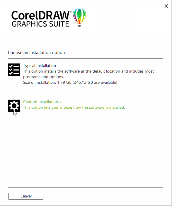 1. Start the CorelDRAW installation process and choose "Custom Installation"